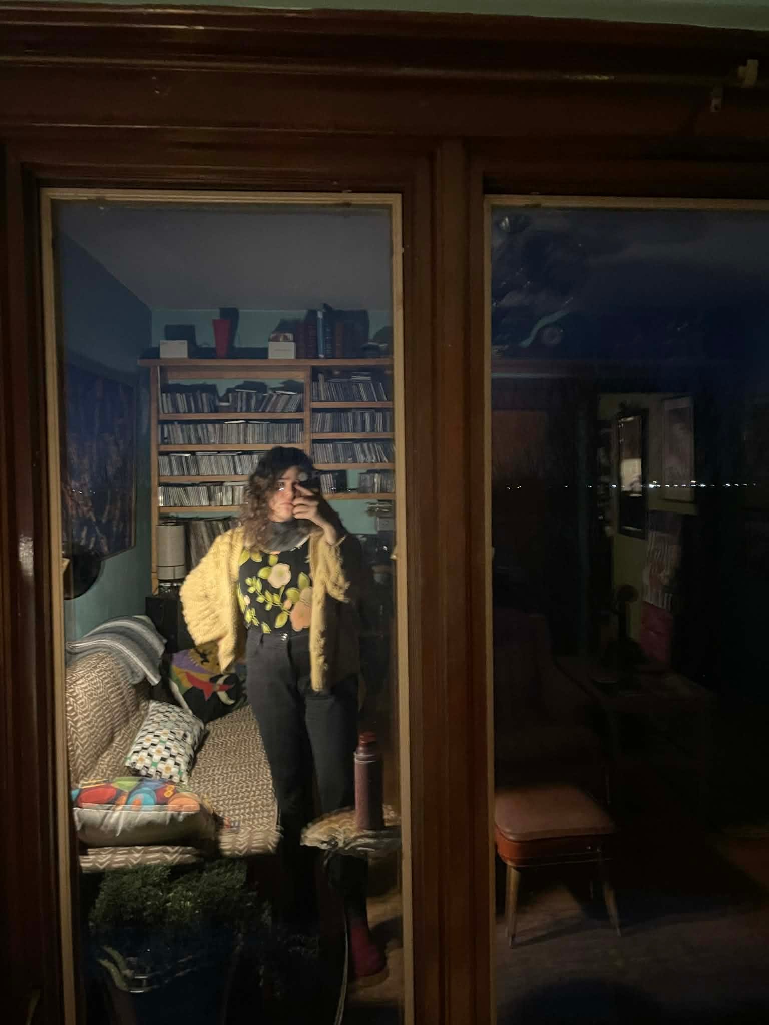 Taste a different temperature of air and let our eyes rest on new materials. At A & A’s house: their couch got reupholstered, some gritty brown fabric. I came in through the breezeway, knocked over the glass animals. Took off my reeboks and put on her birkenstocks.